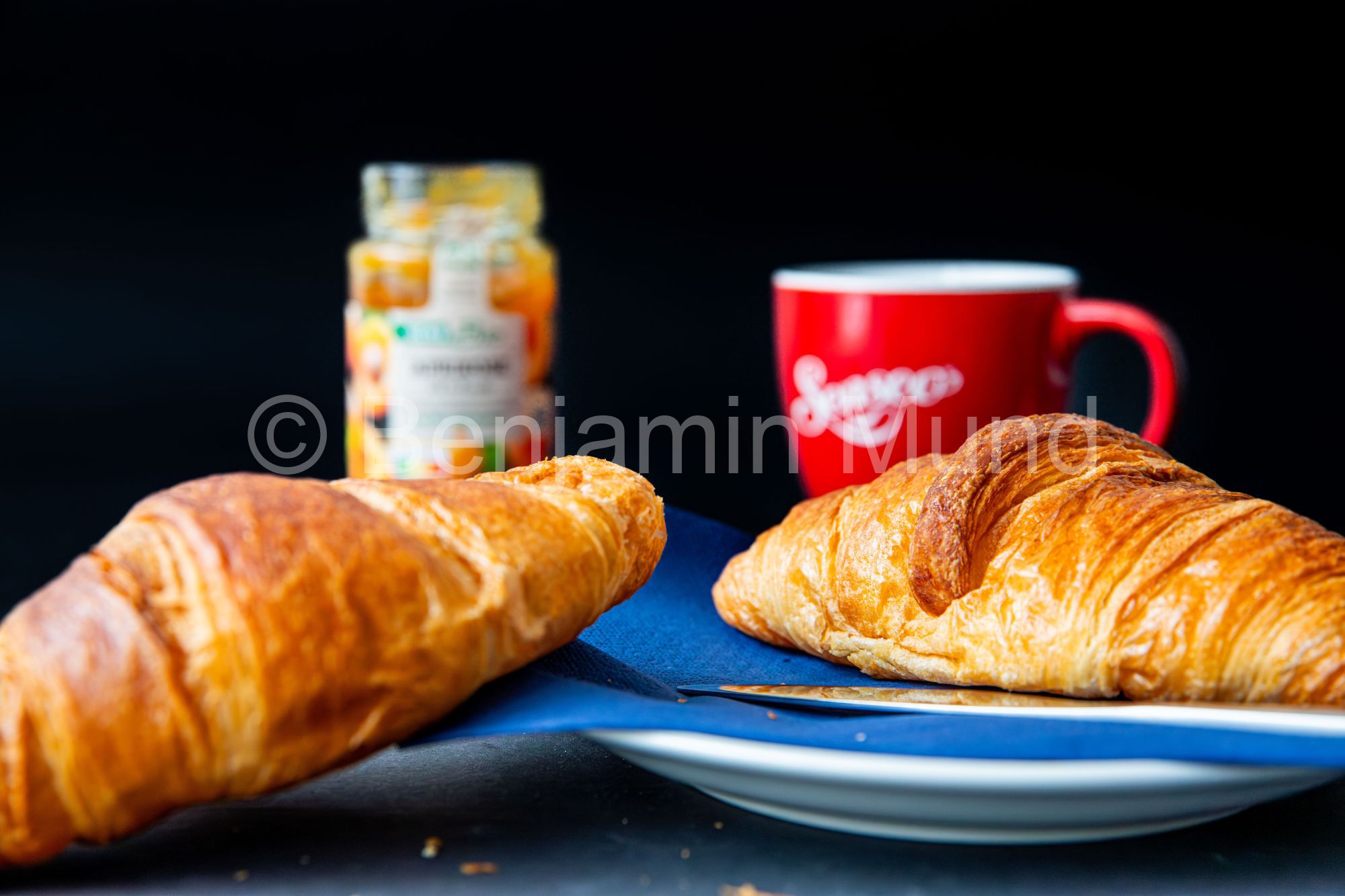 Der zweite Teil des Shootings widmete sich süßen Klassikern: Schoko-Muffins und Croissants. Hier lag der Fokus auf weichen Strukturen, warmen Farbtönen und einer gemütlichen, einladenden Atmosphäre. Die glänzende Schokolade, die luftige Krume der Muffins und die buttrigen Schichten der Croissants wurden detailreich eingefangen und vermittelten ein Gefühl von Genuss und Geborgenheit.