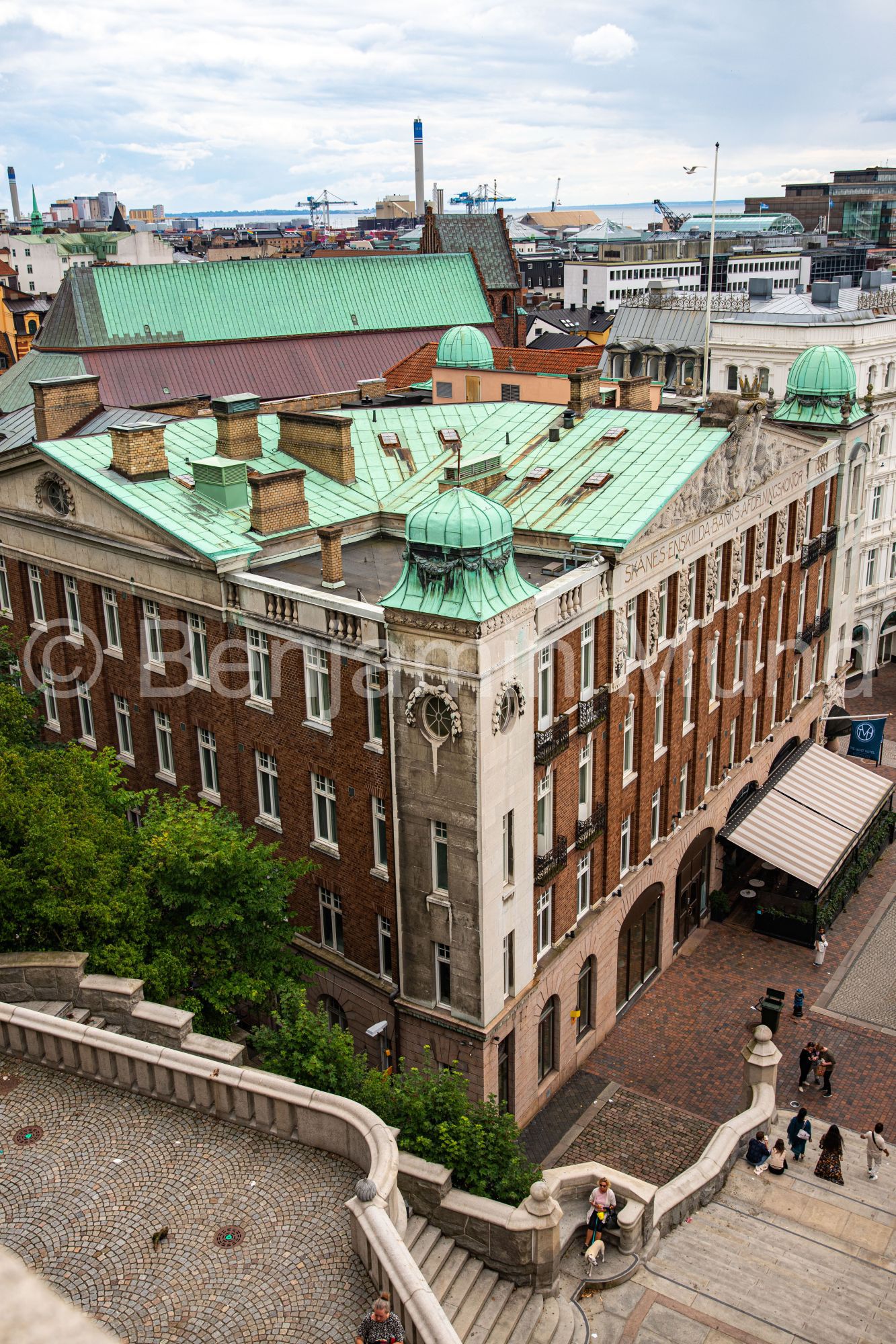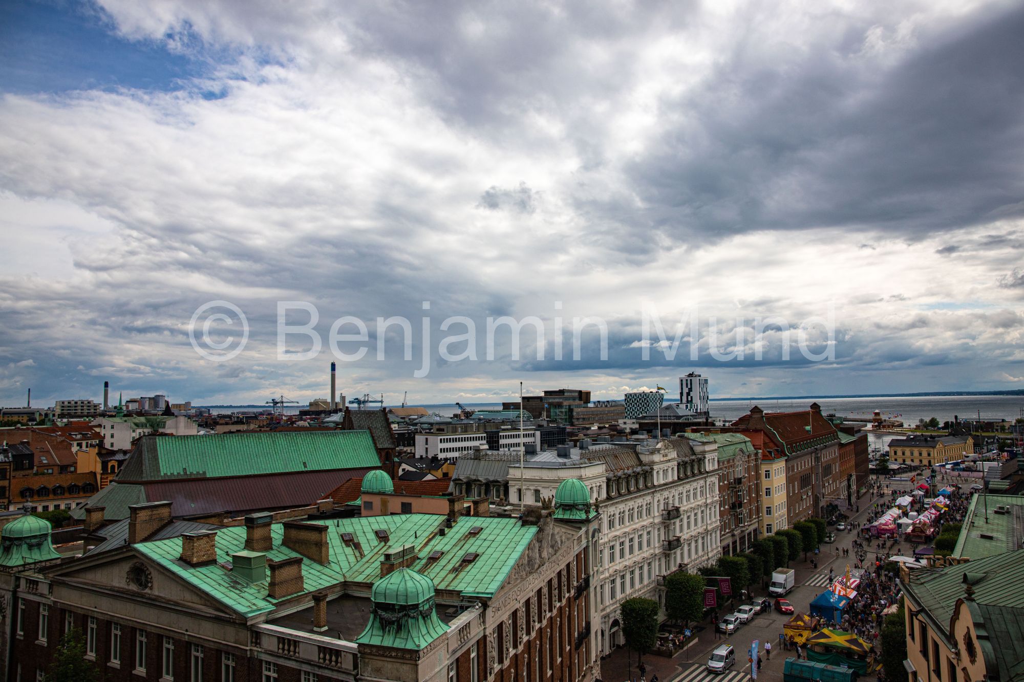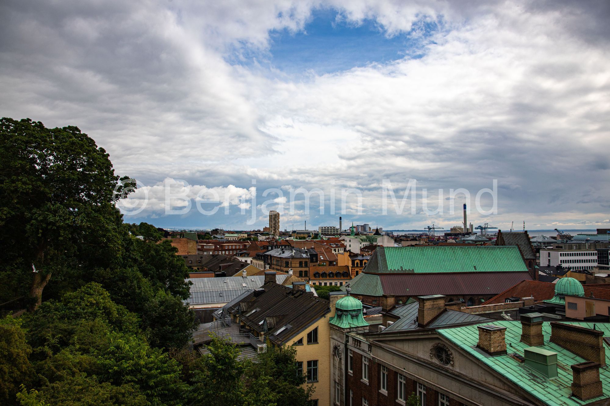 Das unbestrittene Highlight ist die Plattform auf der Turmspitze. Wer die letzte enge Treppe erklommen hat, wird mit einem 360-Grad-Panoramablick belohnt: Über die Altstadt, den Hafen, die bunten Dächer Helsingborgs – und bei klarer Sicht bis nach Helsingør auf der anderen Seite des Öresunds.