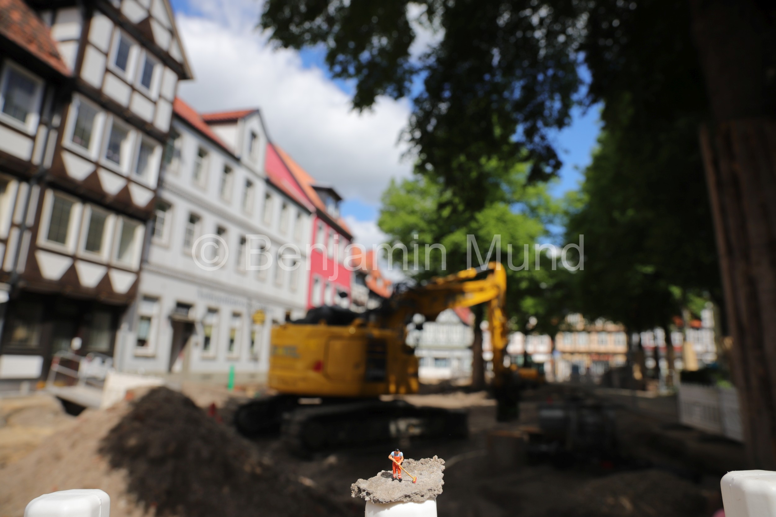 Vom KESS hatte ich erfahren, dass sich die Minis aus unserem Miniaturwelten Fotoworkshop irgendwo in Celle aufhalten. So bin ich mit einigen aus der Fotogruppe losgezogen und habe die Minis gesucht. Einige haben wir in der Innenstadt gefunden, andere am Schloss oder am neuen Rathaus 🙂